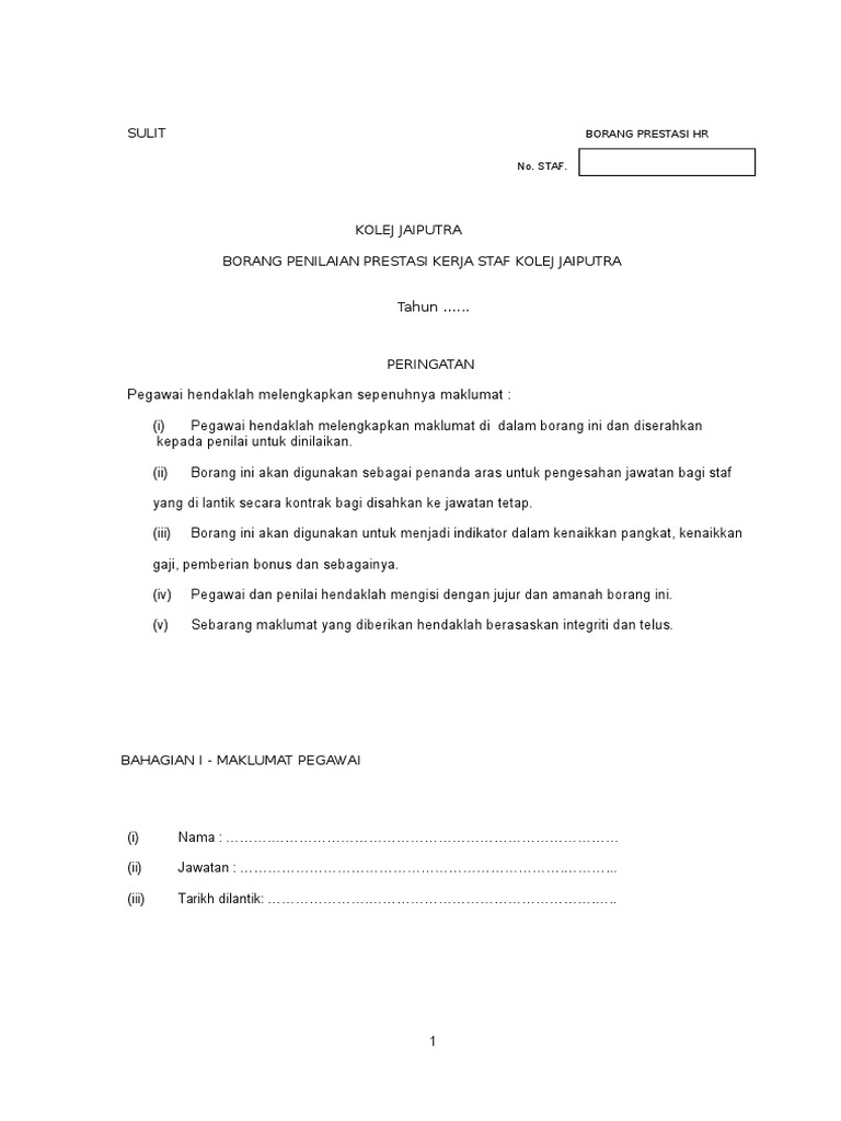 Borang Penilaian Prestasi Staf Jaiputra Pdf