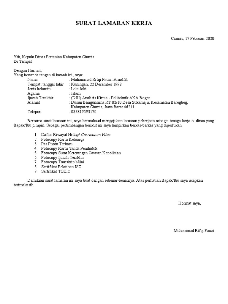 Contoh Lamaran Pekerjaan Analis Dengan Baik Dan Benar
